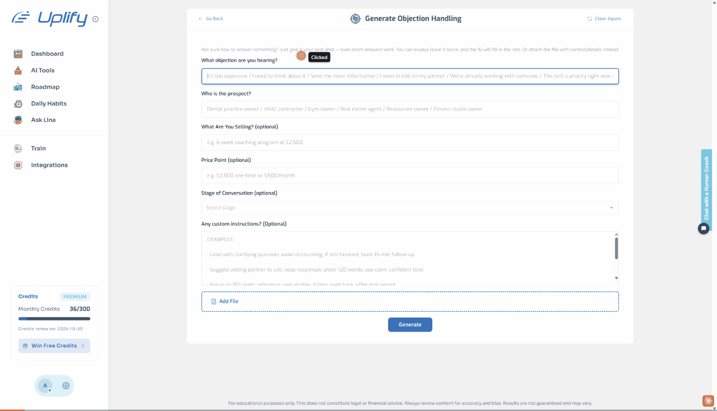 Our AI objection handler prepares you for every sales challenge instantly. Master the most common objections with proven responses that build trust, address concerns, and close more deals.